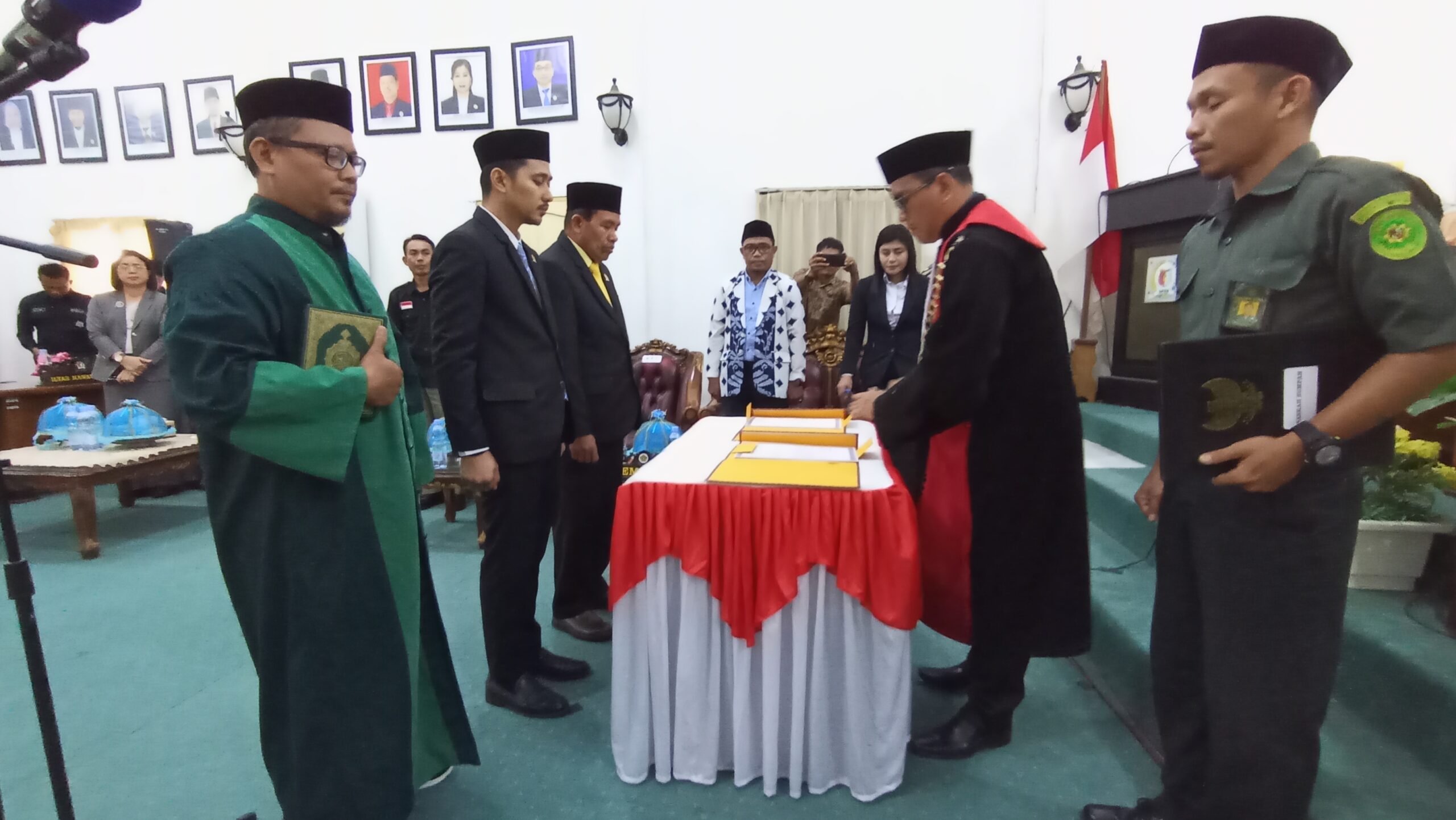 Pengambilan sumpah jabatan dipandu oleh Ketua Pengadilan Negeri Donggala Niko Hendra Saragih SH, dalam rapat paripurna pengucapan sumpah jabatan pimpinan DPRD Kabupaten Sigi.