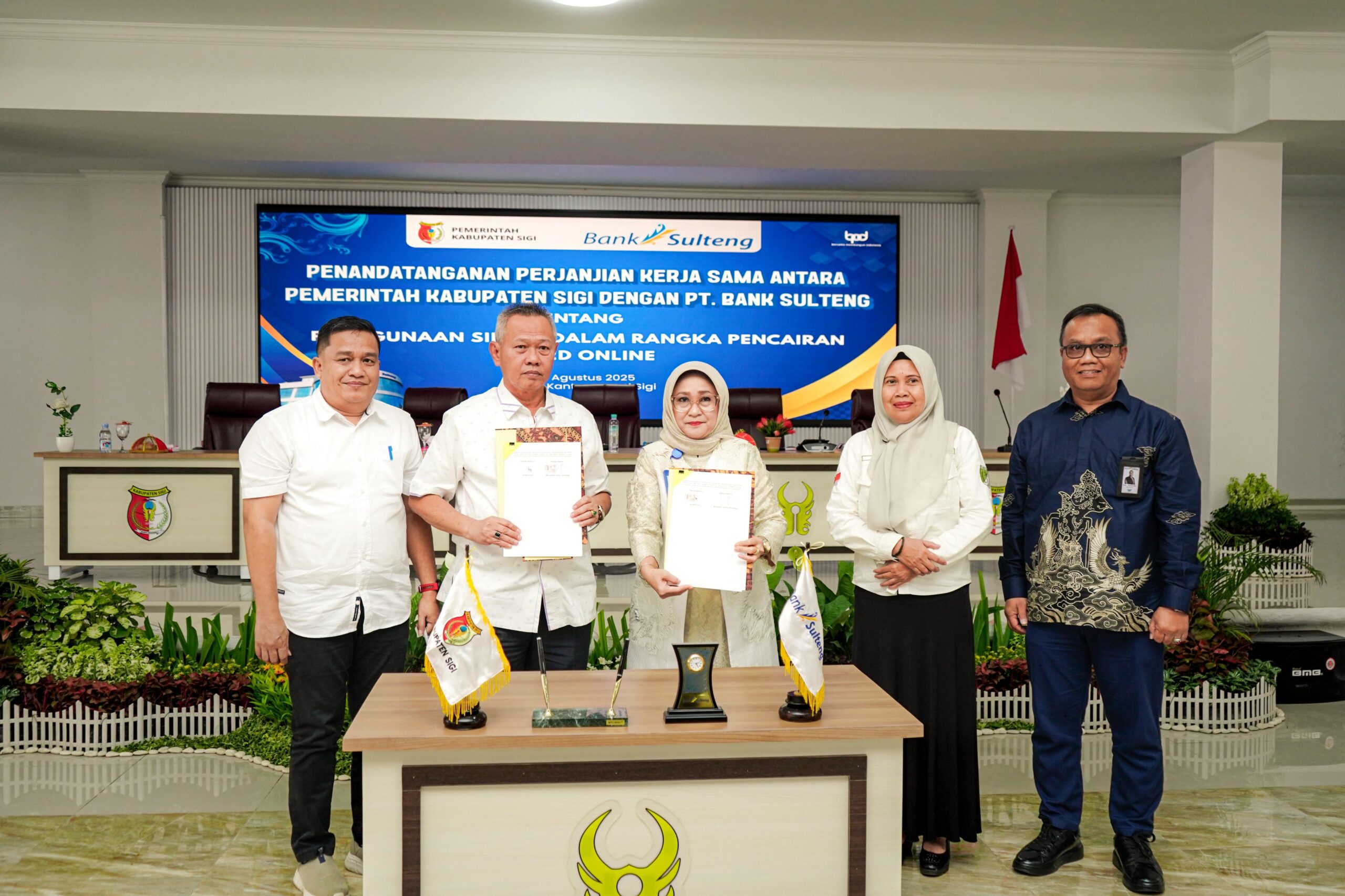Kerja sama tersebut dalam rangka penggunaan Sistem Informasi Pemerintah Daerah Republik Indonesia (SIPD RI) dalam rangka pencairan Surat Perintah Pencairan Dana (SP2D) Online, bertempat di Aula Kantor Bupati Sigi, Rabu (13/8/2025).