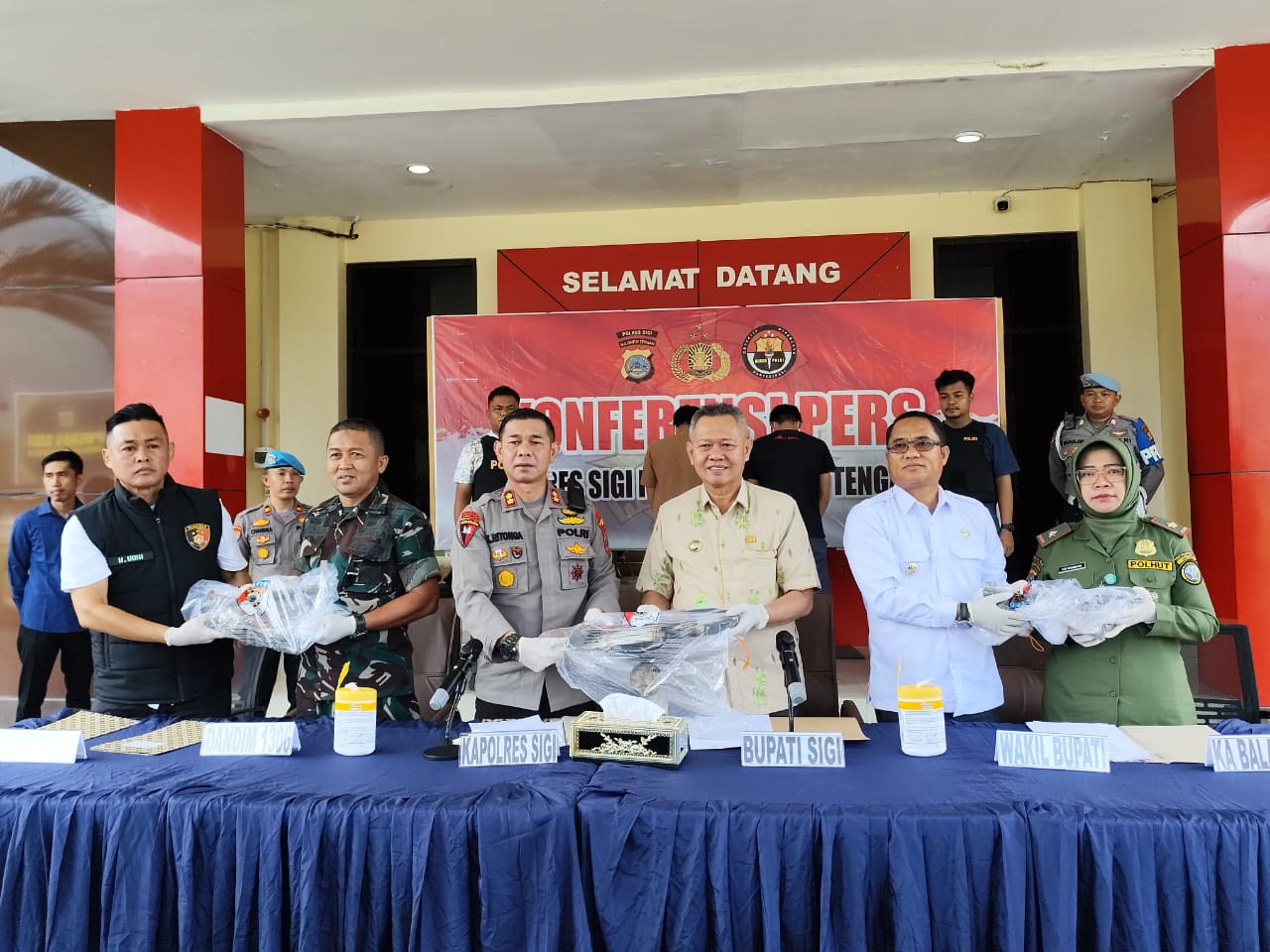 Turut hadir dalam press release Kapolres Sigi, Bupati Sigi, Mohamad Rizal Intjenae, Wakil Bupati Sigi Samuel Yansen Pongi, Perwakilan Kodim 1306/KP, Kasat Reskrim, Kepala BTNLL, serta perwakilan Kejaksaan Negeri (Kejari) Sigi . ***