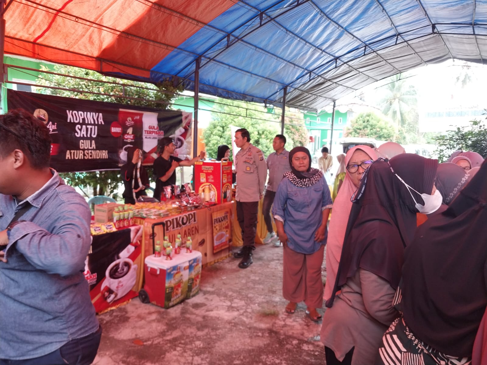 Personel Polsubsektor Gumbasa saat melakukan pengamanan kegiatan pasar murah yang dilaksanakan oleh Dinas Ketahanan Pangan dan Perikanan Sigi, bertempat di Desa Pakuli, Selasa (11/6/2024).FOTO:DOK POLSUBSEKTOR GUMBASA