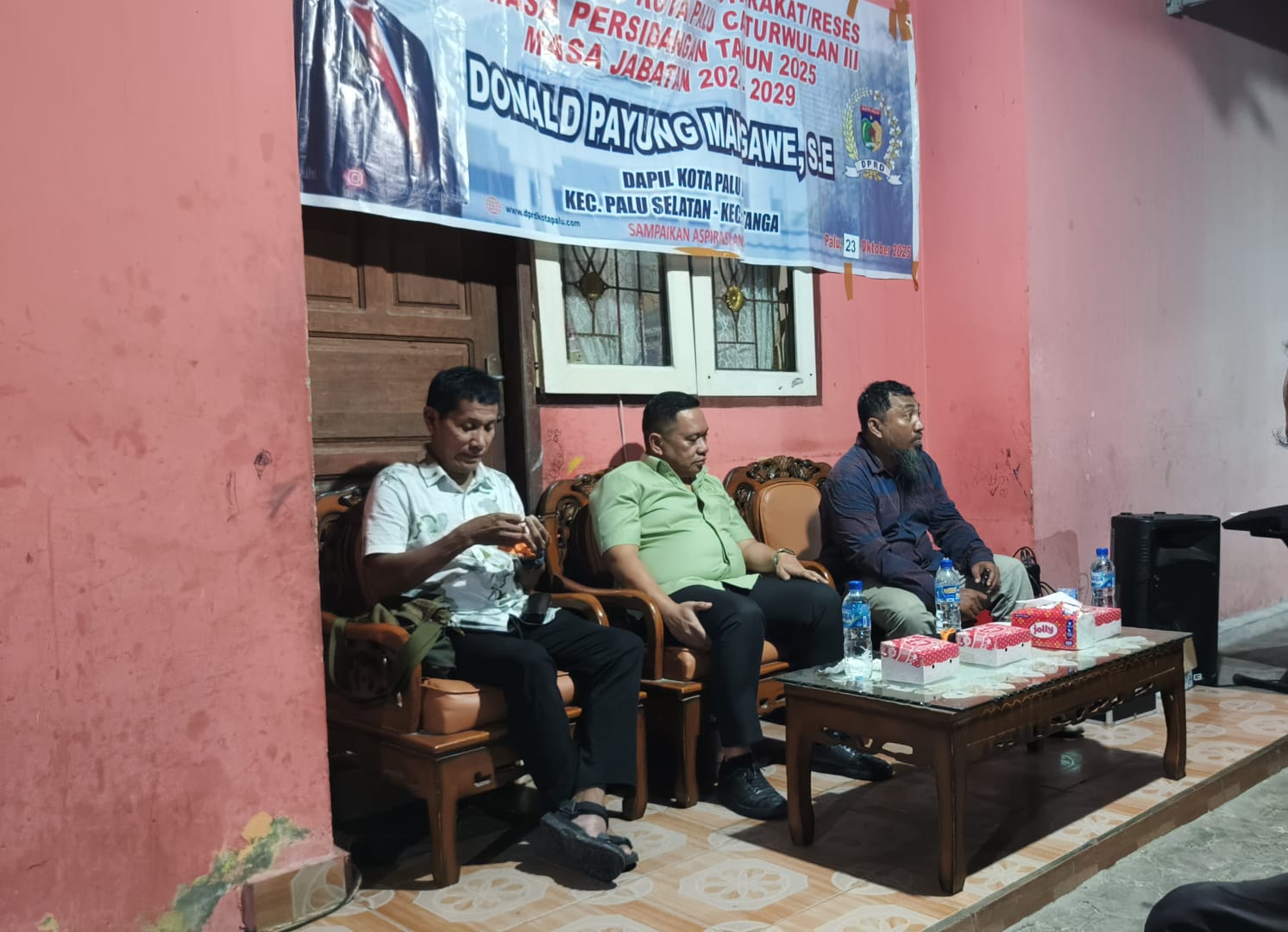 Anggota DPRD Kota Palu dari PDIP Donald Payung Mangawe SE saat reses di Jalan Purnawirawan II Kelurahan Tatura Utara, Kecamatan Palu Selatan, Kamis (23/10/2025).FOTO:ISTIMEWA